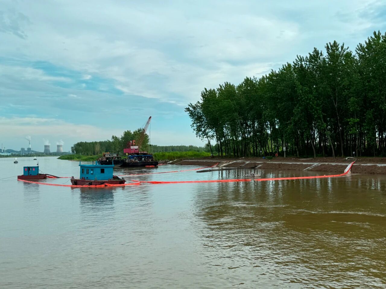 作為國家150項重大水利工程之一,建工水利長江銅陵河段綜合治理工程承載著守護長江安瀾、保障民生用水的重要使命。在項目推進中,如何破解施工期取水口水質保護難題?安徽建工水利團隊交出了一份亮眼答卷——在K2+055~K2+080段取水口處,成功應用“防泥幕簾”這一“秘密武器”,為水源保護區(qū)筑起一道堅實的 “清水屏障”。