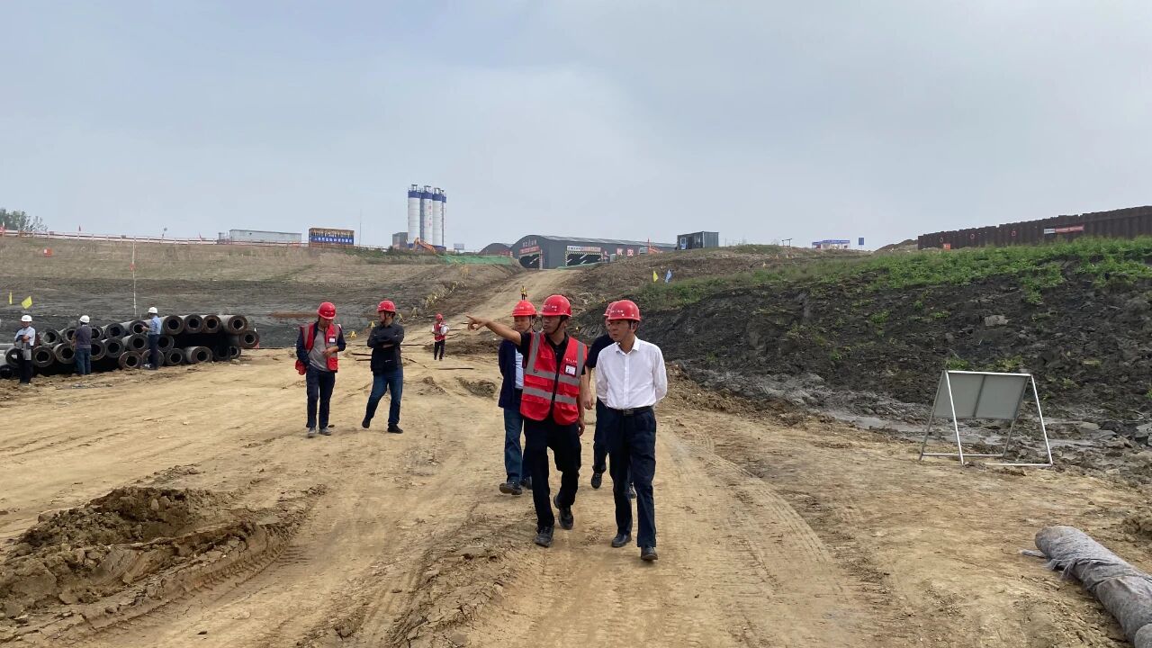 杜海峰一行深入施工現(xiàn)場,詳細查看部分施工關鍵工序進展,了解安全防護措施落實、工程質(zhì)量管控標準等情況,認真聽取項目建設進展匯報。